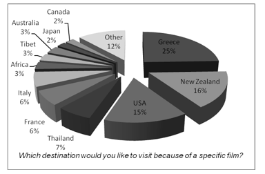 Set-jetting tourism or film-induced tourism is a growing phenomenon worldwide. Set-jetting tourism is defined here as travelling to a particular destination after having seen it in a film or television show. Film is of increasing importance to a destination since it can put a place on the map and is more effective than tourism advertisements as it is viewed by millions of people. Though it is clear that film is an important and powerful image maker, the sector is often still seen as a risk because there is no guarantee of a film’s success. Many destinations are now working to become 'film friendly' by developing relationships with major film studios, international and local PR companies and advertising agencies. Activities include providing relevant filming information regarding sites, tides, legal requirements and so on. Film is often considered as ‘free footage’ in similar terms to ‘free ink’ (Beeton, 2005), but the effort required to encourage film can be costly and time consuming. Though much of this work is time-consuming and not always successful, it is crucial to attracting film activity: as such “free footage” has a higher credibility than a tourism body promotion has. In Greece, the importance of film productions has already been recognized and in 2007 the Hellenic Film Commission Office was established in order to provide every possible service to foreign film producers to shoot their film in Greece.