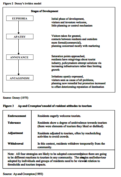 Doxey, G.V. (1975). A causation theory of visitor resident irritants: methodology and research inferences. In: Proceedings of the Sixth Annual Conference of The Travel Research Association, The Impact of Tourism, San Diego, 195-198.